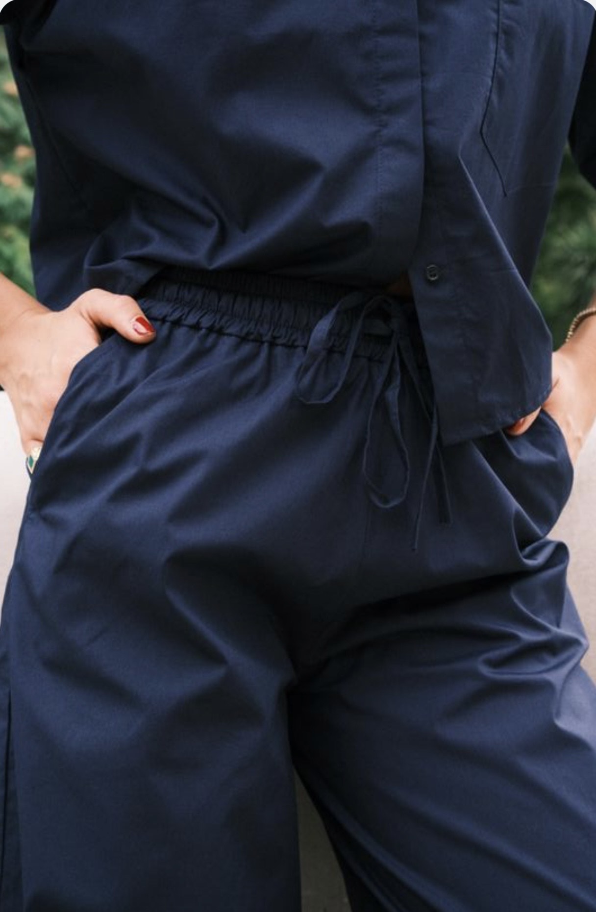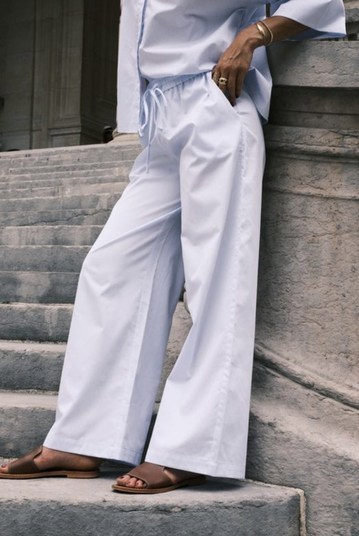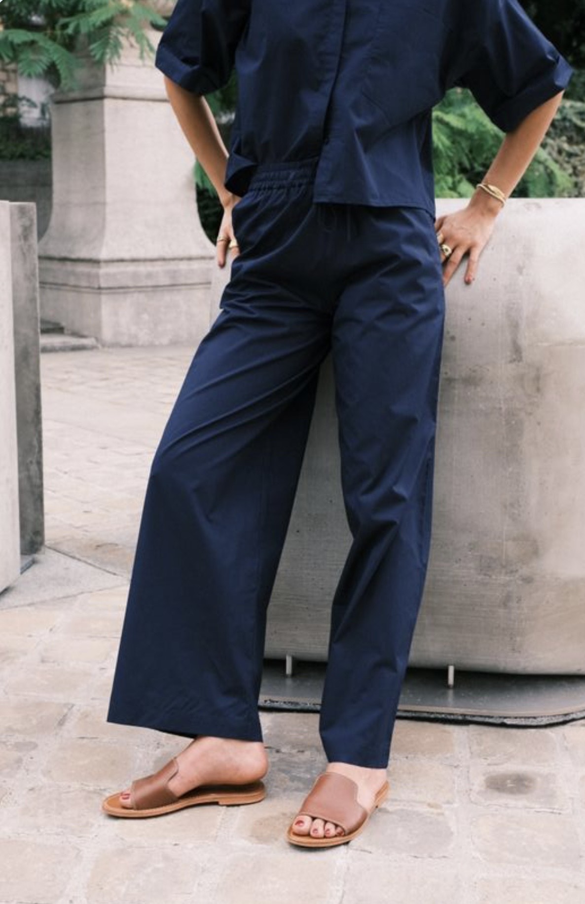 These wide-leg cotton poplin pants have an elastic waistband.