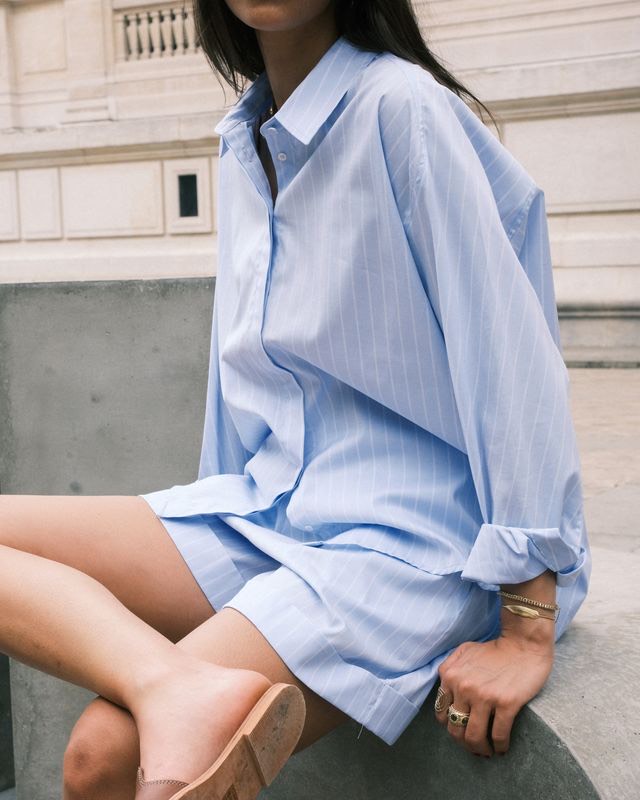 This set consists of an oversized long-sleeve shirt and shorts, made from Italian cotton poplin.